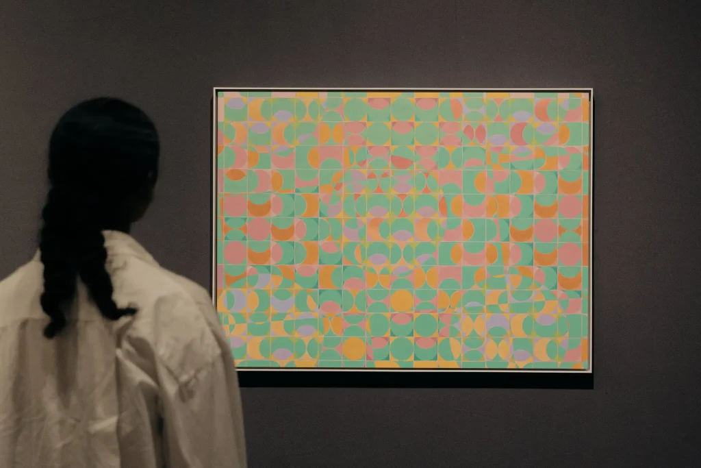 Thực hành hội họa ám ảnh, dựa trên các con số của Xylor Jane trở nên thoải mái và đồng đều, nếu cô ấy bỏ qua trò chơi chữ, sôi động trong bộ tranh vải mới này, lấy cảm hứng từ Mondrian, trong đó các lưới gọn gàng của các vòng tròn màu sắc tươi sáng giao nhau với các hình dạng và đường nét nghiêng không đều. Nếu trước đây, tác phẩm của cô ấy được thúc đẩy bởi sự căng thẳng giữa trật tự và sự phấn khích, thì giờ đây cô ấy đã tìm ra cách để chúng kết hợp với nhau. (Chiếc ghế dài màu đen sành điệu của Canada cũng nhận được phiếu bầu của tôi cho đồ nội thất đẹp nhất trong Triển lãm nghệ thuật.)