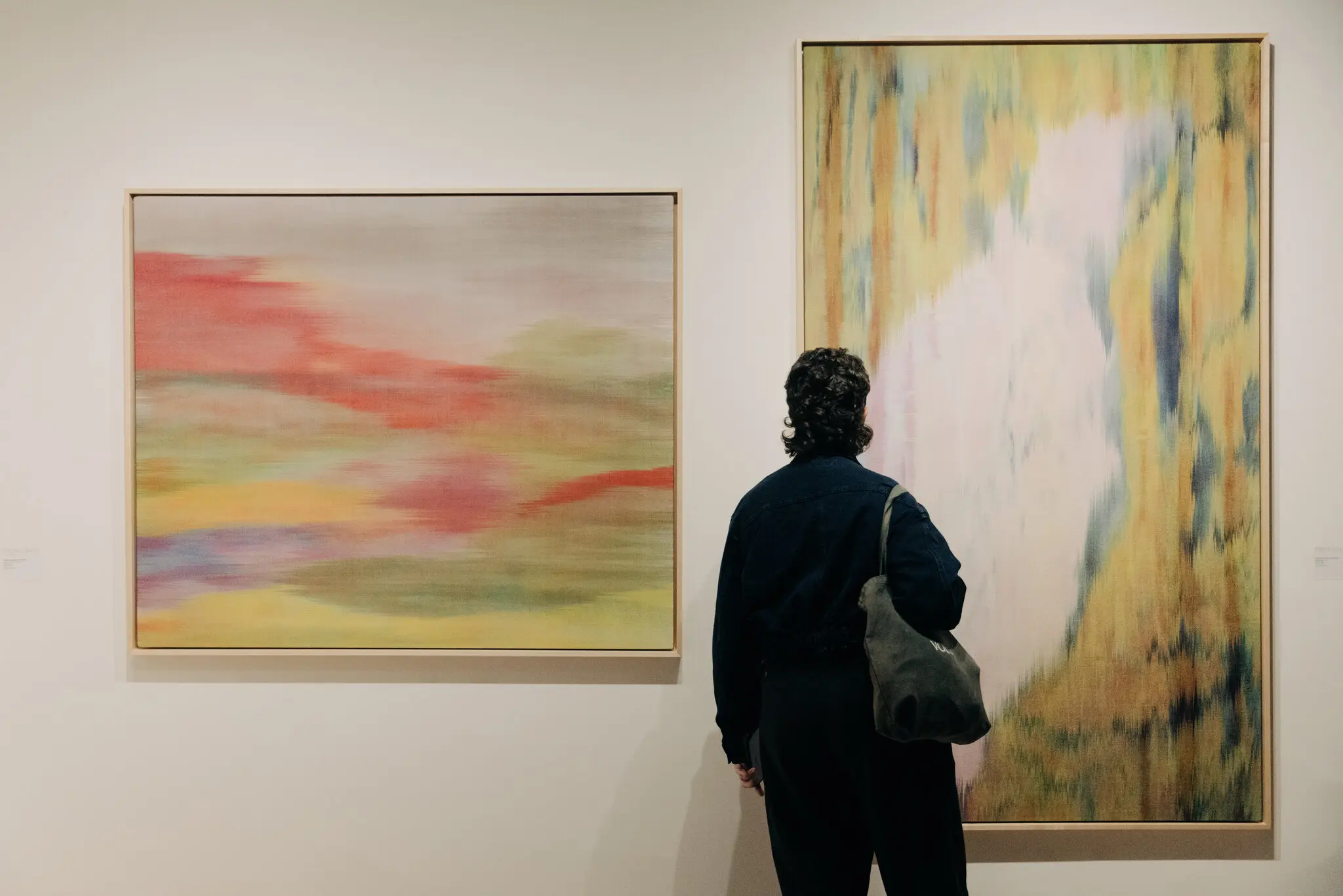 | Từ trái sang, những tấm vải lanh dệt tay tinh xảo của Ruth Laskey bao gồm “Twill Series (Loops 5)” năm 2023; “Days of Our Youth” của Adaline Kent, năm 1947; “Rendezvous” của Kent, năm 1954; và “Twill Series (Loops 3)” của Laskey, năm 2023 tại phòng trưng bày Altman Siegel.Tín dụng…Jeenah Moon cho tờ New York Times |