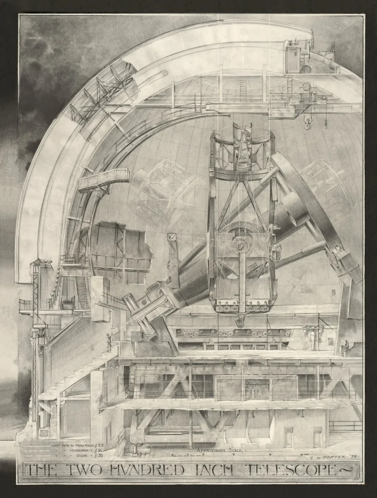 Russell Porter, “The Two Hundred Inch Telescope,” 1938. “Crossing Over: Art and Science at Caltech, 1920—2020” tại Viện Công nghệ California. Triển lãm sẽ giới thiệu những cuốn sách thiên văn học quý hiếm.Tín dụng…Lưu trữ và Bộ sưu tập đặc biệt của Caltech
